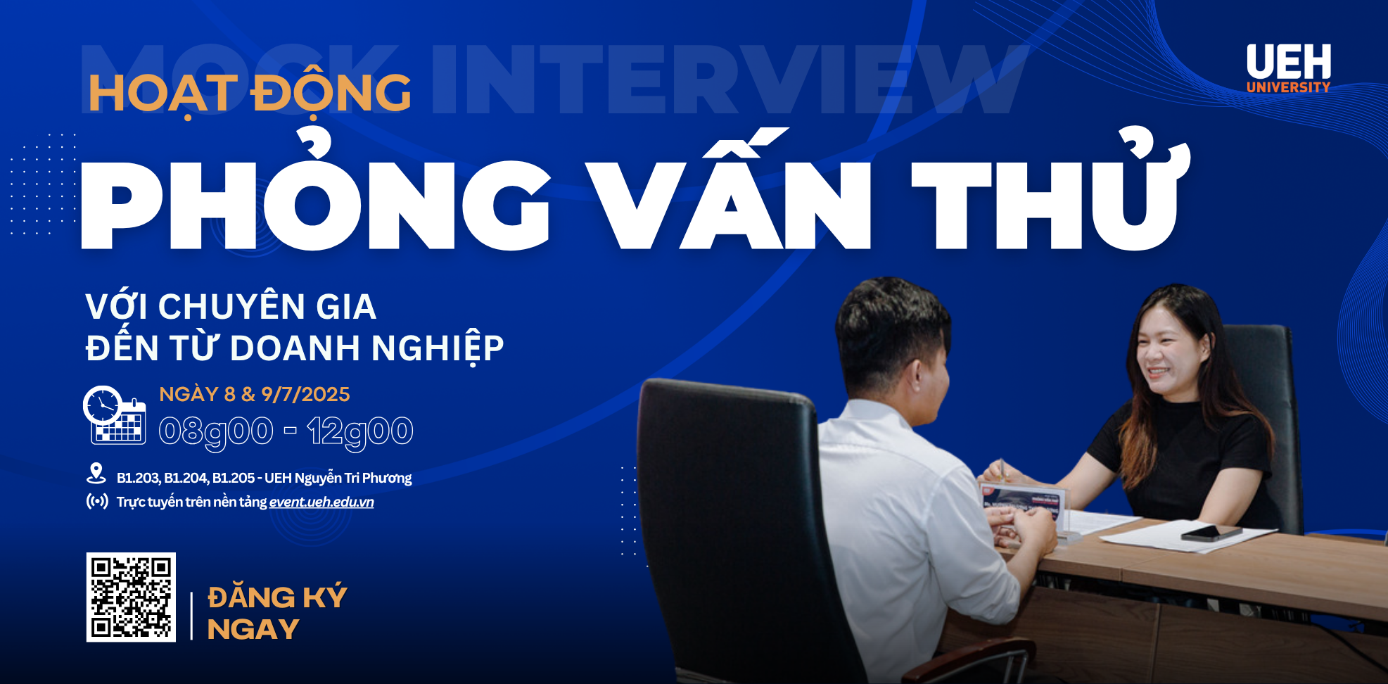 + Trực tiếp tại Đại học Kinh tế Thành phố Hồ Chí Minh – 279 Nguyễn Tri Phương, Phường 8, Quận 10, TP.HCM; + Trực tuyến trên nền tảng event.ueh.edu.vn Đăng ký tại: http://go.ueh.edu.vn/phongvanthu2025" |