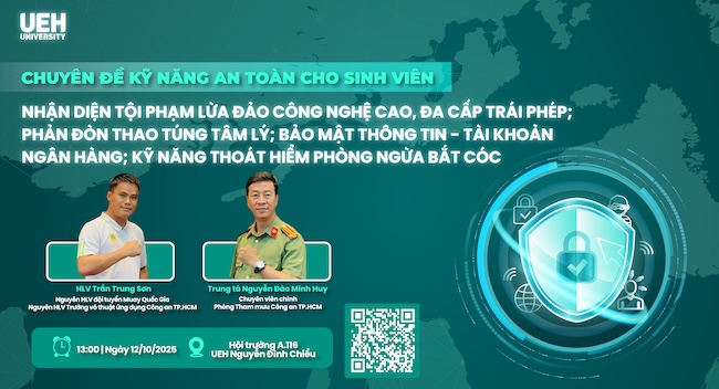 - Thời gian: 13g00 ngày 12/10/2025- Địa điểm: Hội trường A.116 UEH Nguyễn Đình Chiểu