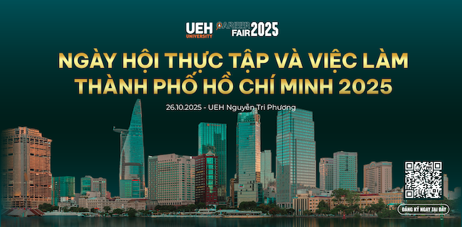 Thời gian:- UEH Mekong: ngày 17/10/2025 (dự kiến)- UEH cơ sở chính: từ ngày 20/10 đến ngày 26/10/2025Địa điểm: Trực tiếp tại UEH cơ sở B và UEH MekongTrực tuyến trên event.ueh.edu.vn và vieclam.ueh.edu.vn.