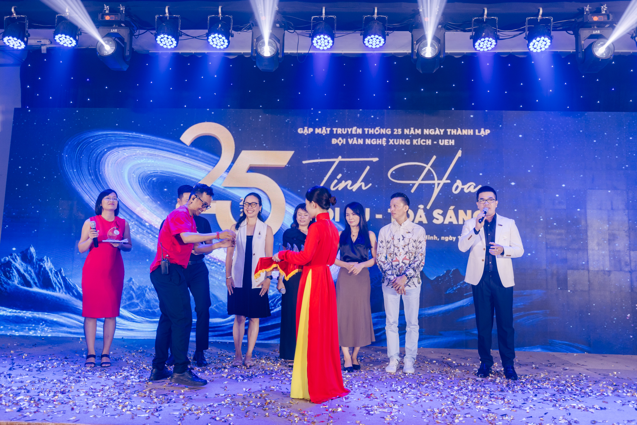 Chương trình kỷ niệm 25 năm thành lập Đội Văn nghệ xung kích UEH được diễn ra trong không khí gần gũi, chân tình với bữa tiệc âm nhạc được biểu diễn bởi các giọng hát kỳ cựu của Đội. Đây cũng là dịp để các anh chị trở về với Đội, ôn lại những kỷ niệm tuổi trẻ và nhận kỷ niệm chương tri ân từ Ban Tổ chức, ghi nhận những đóng góp xuất sắc và khẳng định sự gắn kết liên tục và tinh thần đồng hành giữa các thế hệ của Đội.