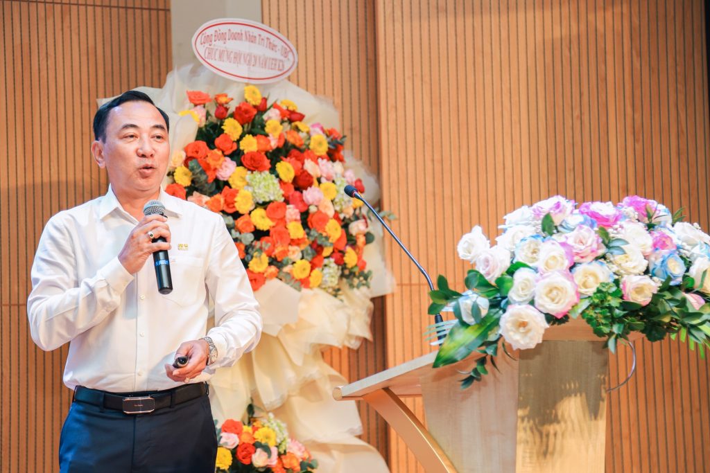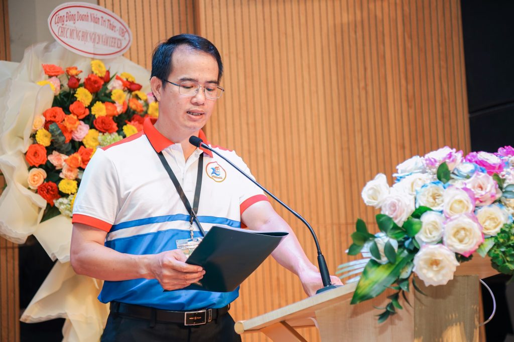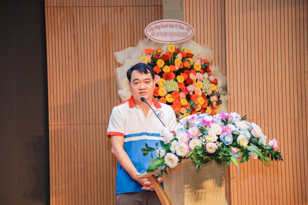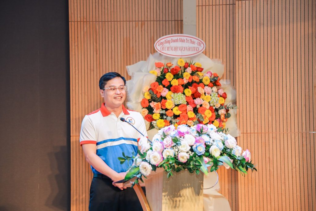 Anh Hoàng Văn Việt, Đại diện Ban tổ chức và Ban liên lạc Khóa 26, phát biểu và thông báo ra mắt Cộng đồng Doanh nhân Trí thức UEH