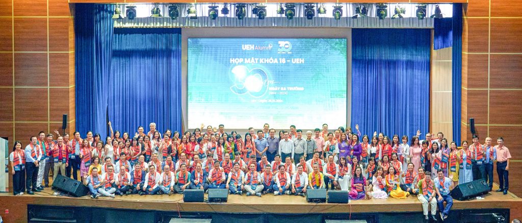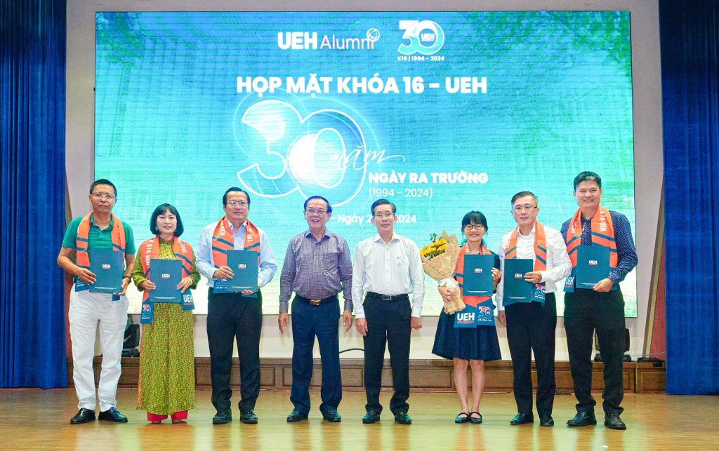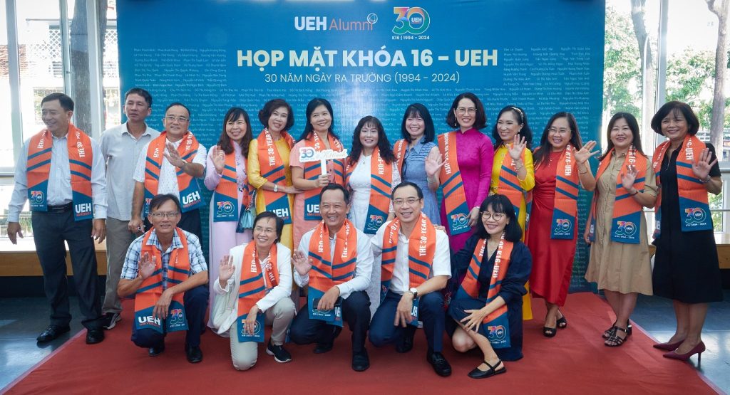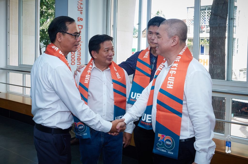 Ngày 26/10/2024 tại Hội trường A.116, cơ sở A, gần 150 cựu sinh viên Khóa 16 Đại học Kinh tế Thành phố Hồ Chí Minh (UEH) đã trở về mái trường xưa tham dự chương trình kỷ niệm 30 năm ngày ra trường (1994 – 2024). Đây không chỉ là dịp để ôn lại những kỷ niệm đẹp của thời sinh viên, mà còn là cơ hội để các thế hệ UEHer cùng nhau tri ân những năm tháng gắn bó dưới mái trường UEH, đồng thời đánh dấu cột mốc 48 năm ngày thành lập trường.