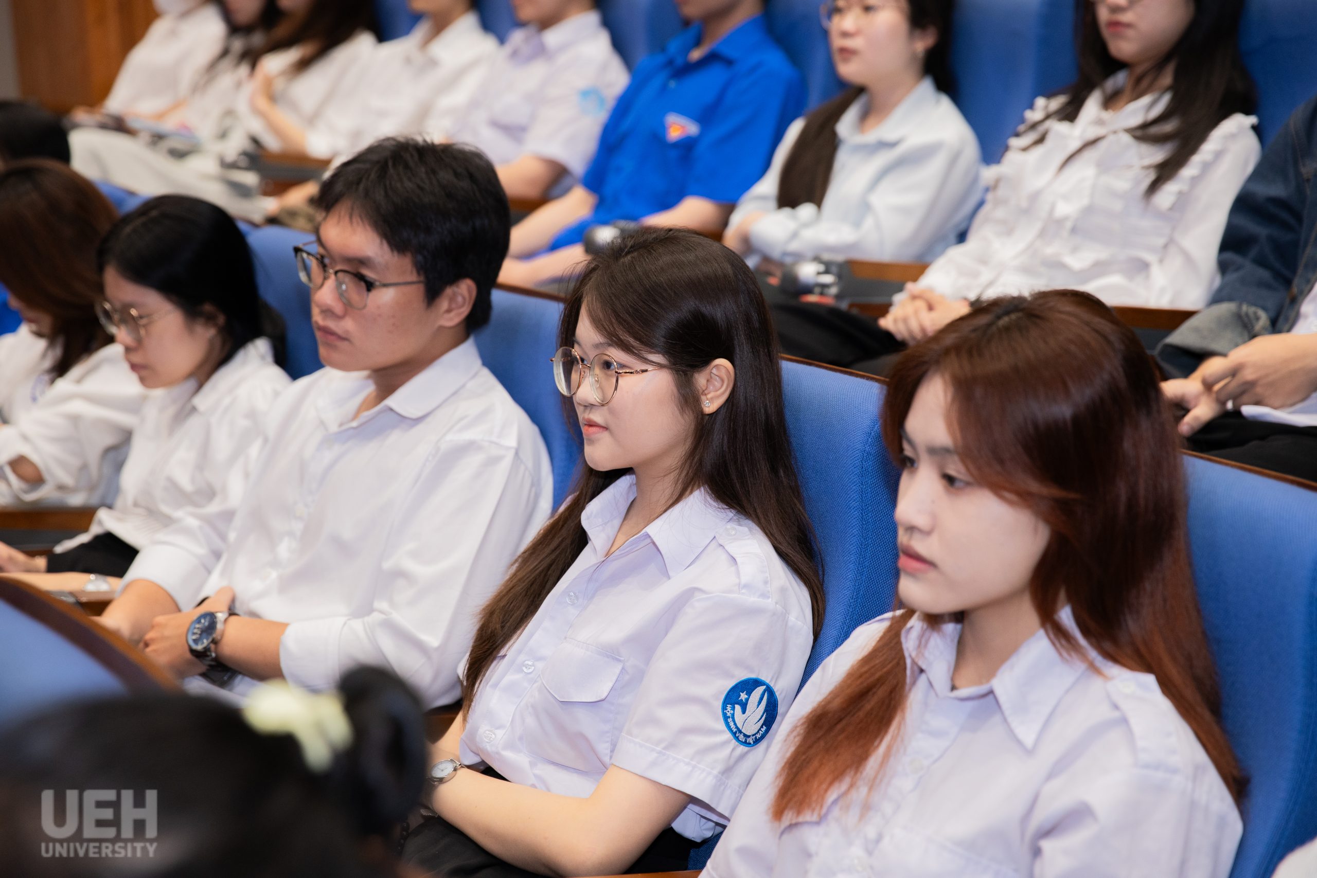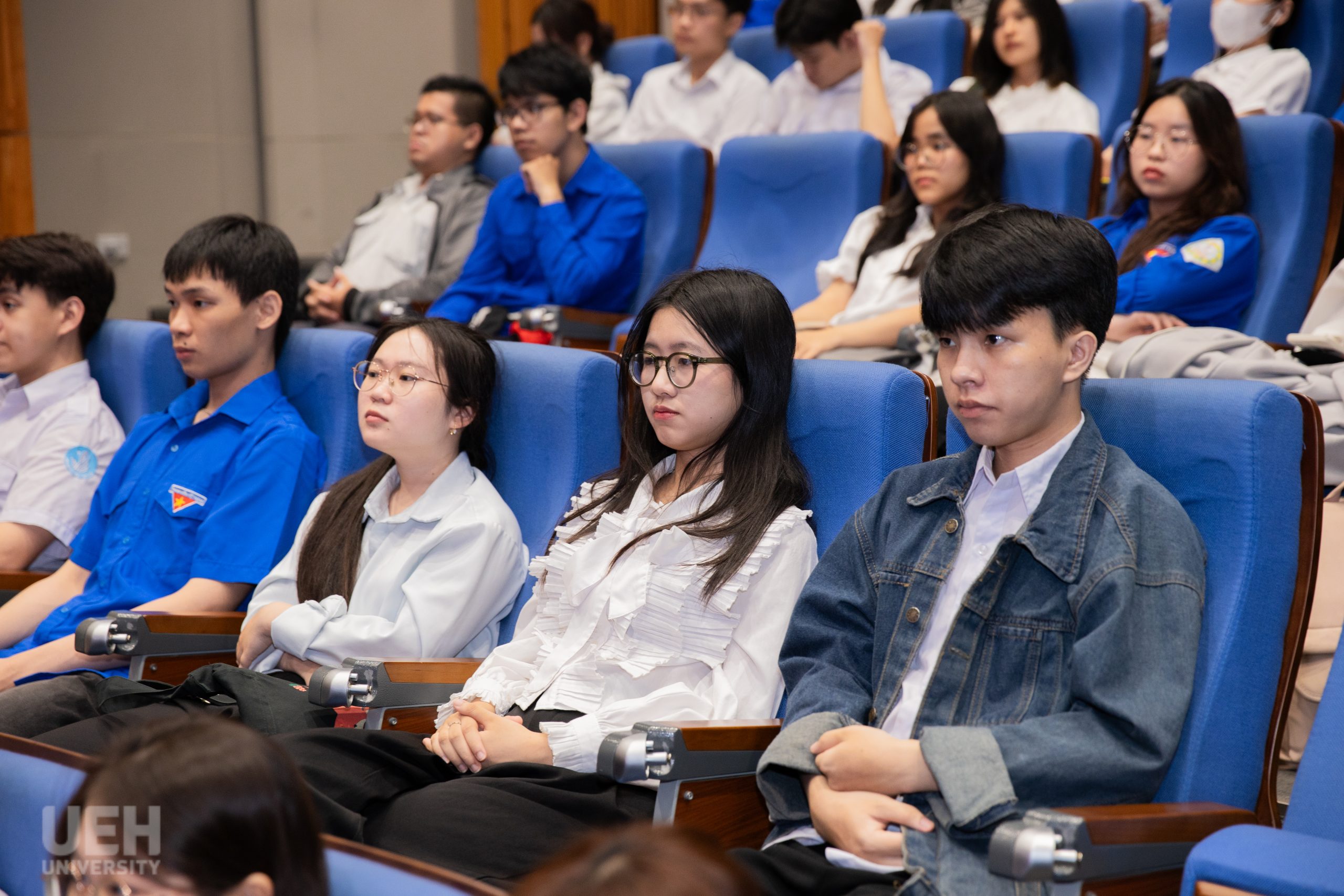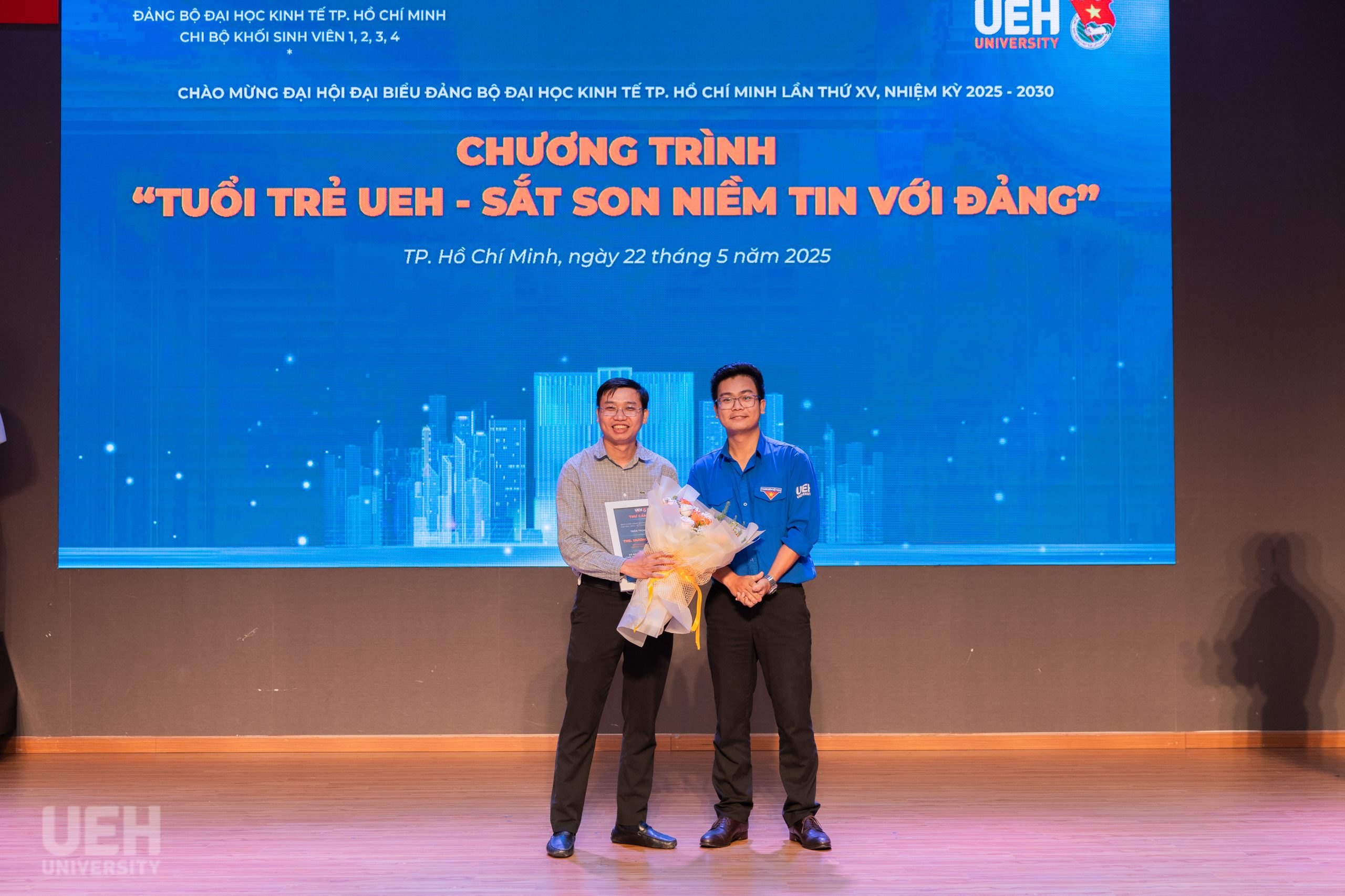 Kết lại chương trình, phần chia sẻ của Anh Dương Minh Mẫn – Phó Trưởng Ban Thường trực Ban Phát triển tổ chức – nhân lực, Đảng ủy viên phụ trách công tác thanh niên, nguyên Bí thư Đoàn UEH, với chủ đề “Tư duy và hành động của thế hệ trẻ cho sự phát triển của UEH” đã đặt trọng tâm vào vai trò của Đảng viên trẻ và cán bộ Đoàn – Hội trong việc dẫn dắt và thúc đẩy phong trào sinh viên. Bằng kinh nghiệm lãnh đạo thực tiễn và những câu chuyện sinh động từ phong trào thanh niên mà anh từng trực tiếp tham gia và dẫn dắt, anh đã giúp các thủ lĩnh sinh viên nhận thức rõ hơn về nhiệm vụ tiên phong, khả năng dẫn dắt và sự cần thiết của tư duy sáng tạo trong mọi hoạt động. Đồng thời, trong bối cảnh phát triển và hội nhập hiện nay, mỗi cán bộ Đoàn – Hội và Đảng viên trẻ không chỉ cần trau dồi kiến thức mà còn phải tích cực rèn luyện kỹ năng lãnh đạo, khả năng quản lý hoạt động nhóm, cũng như phát triển tư duy chiến lược nhằm tạo ra các giá trị thiết thực, lâu dài cho cộng đồng sinh viên và nhà trường. Phần chia sẻ này đã tiếp thêm động lực mạnh mẽ, thúc đẩy mỗi bạn trẻ tích cực hơn nữa trong vai trò của mình, thể hiện tinh thần trách nhiệm và quyết tâm hành động cụ thể, đóng góp hiệu quả vào sự phát triển bền vững của UEH.