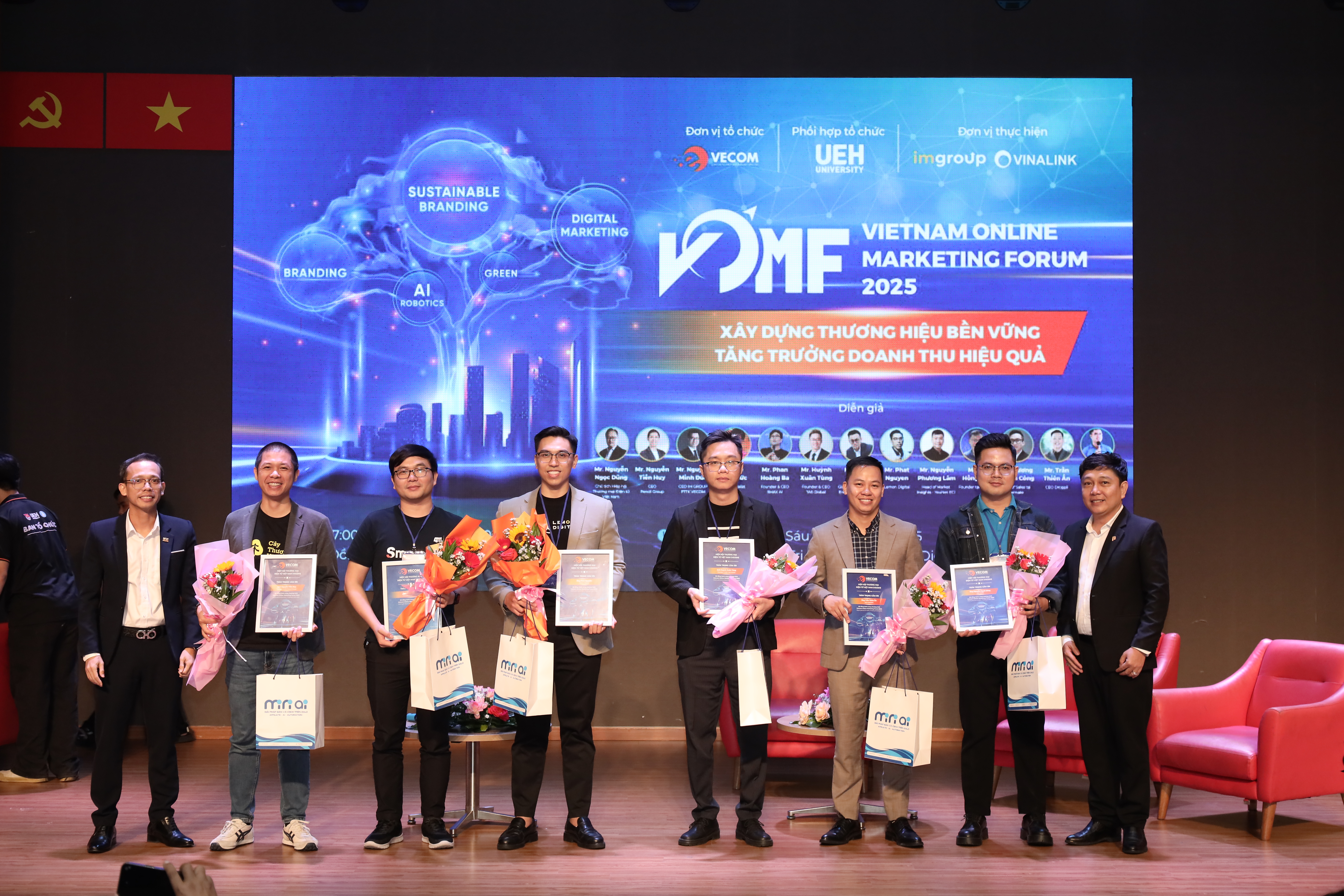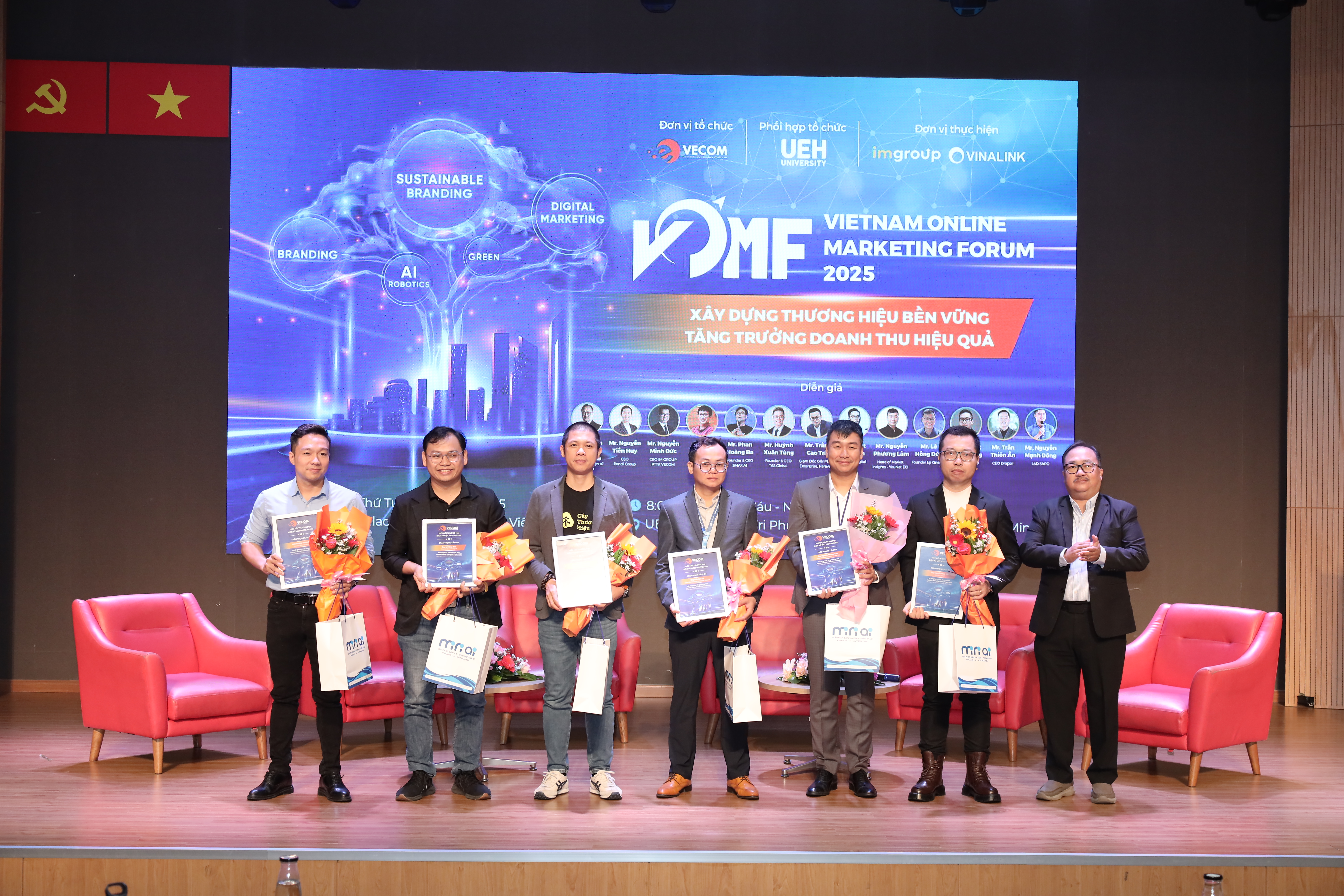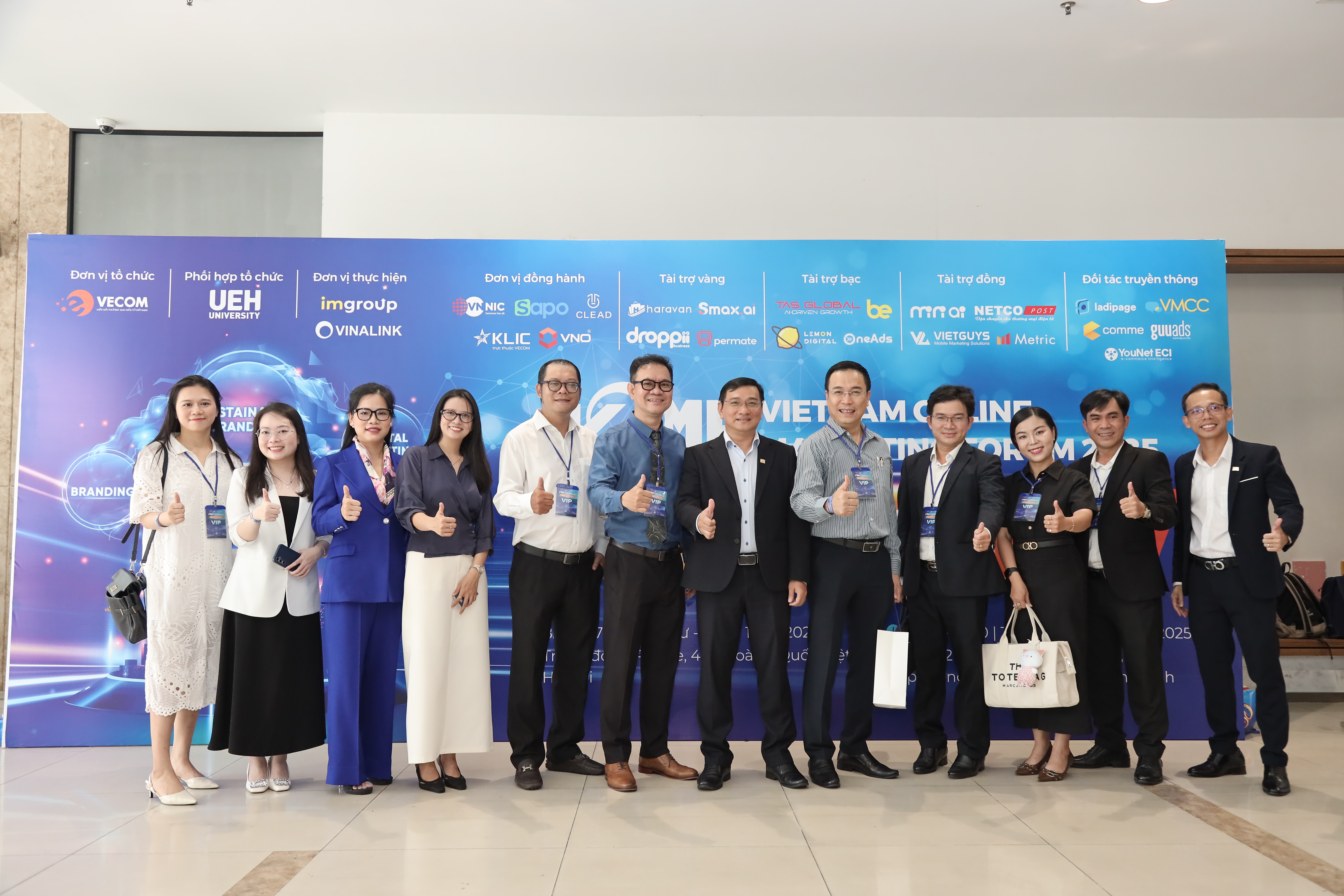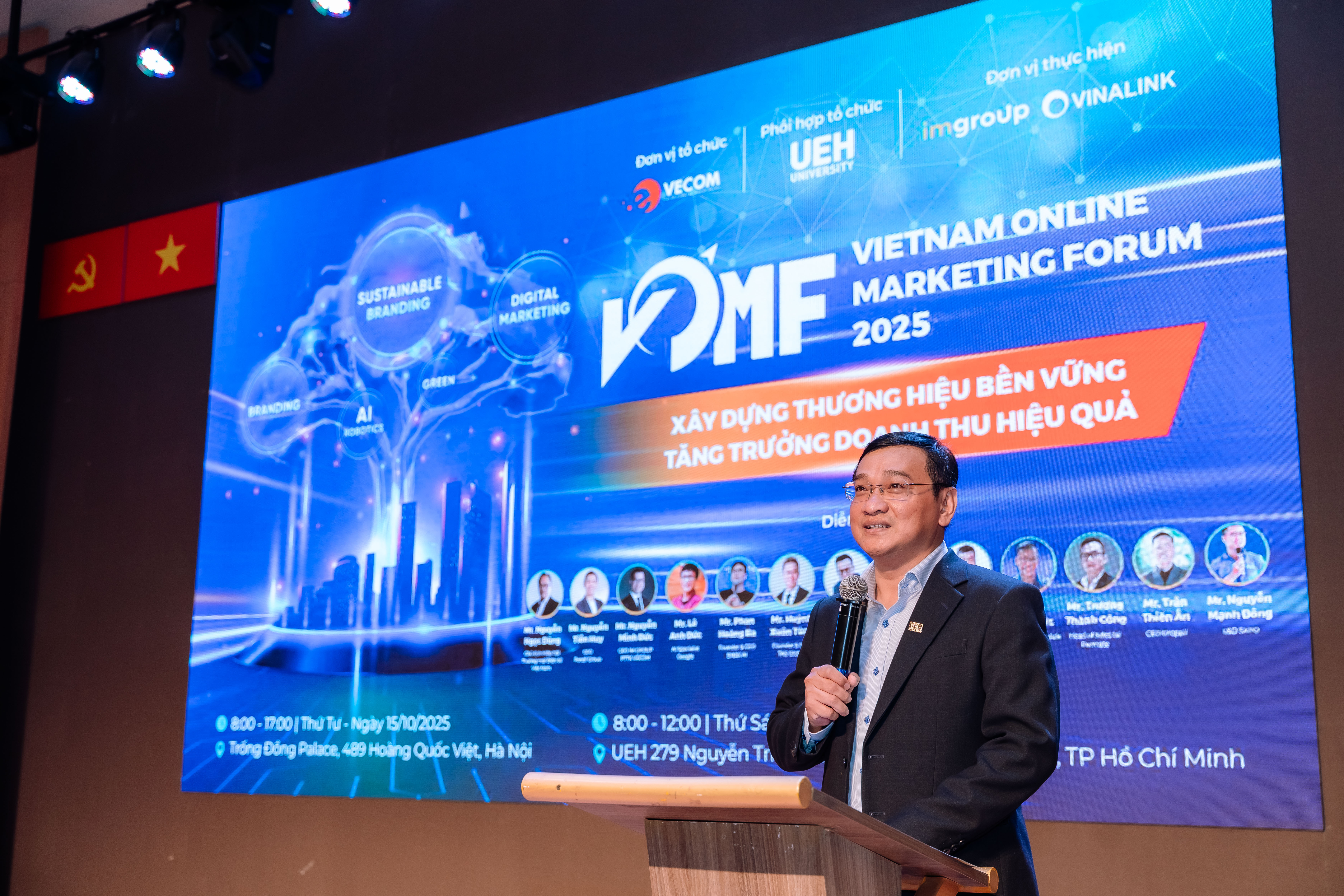 Trong khuôn khổ chương trình “Kết nối cộng đồng - Lan tỏa tri thức - Hành động bền vững”, sáng ngày 17/10/2025, tại Hội trường B1.302, Đại học Kinh tế Thành phố Hồ Chí Minh (UEH) phối hợp cùng Hiệp hội Thương mại điện tử Việt Nam (VECOM) và Mạng lưới các cơ sở đào tạo Thương mại điện tử tổ chức thành công Diễn đàn Tiếp thị Trực tuyến - Vietnam Online Marketing Forum 2025 (VOMF 2025) với chủ đề “Xây dựng thương hiệu bền vững - Tăng trưởng doanh thu hiệu quả”. Chương trình đã thu hút sự tham gia đồng hành của nhiều doanh nghiệp lớn trong lĩnh vực tiếp thị và thương mại điện tử.